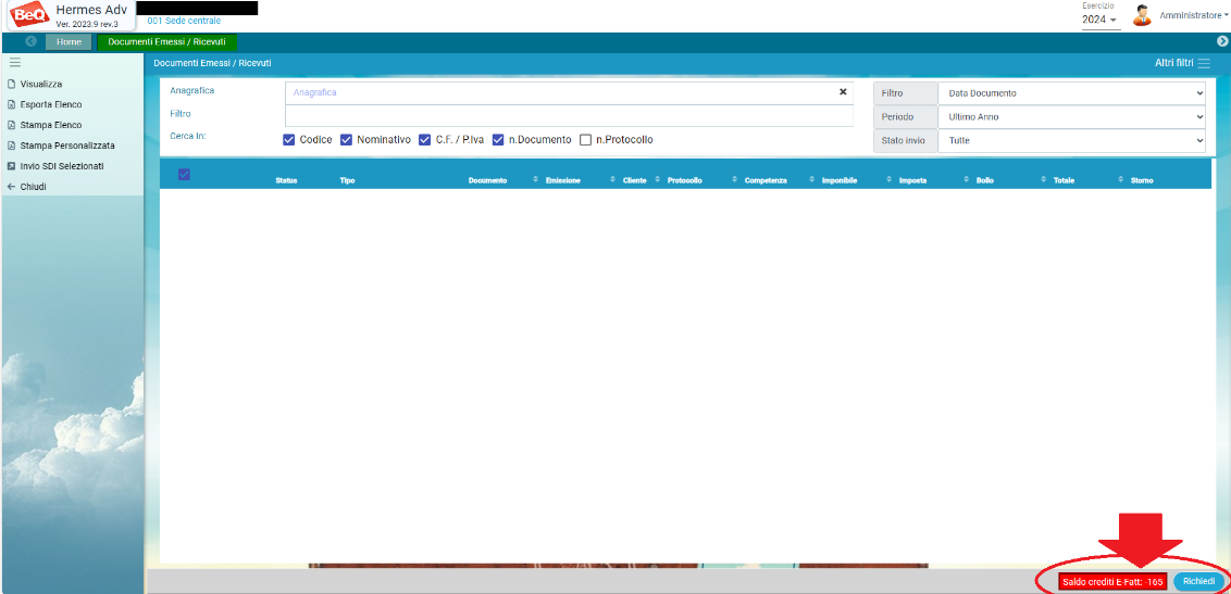 E' possibile fare un controllo dei crediti dal menu Documenti→Documenti Emessi/Ricevuti.