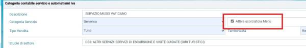 Dal menu Tabelle → Categorie servizio sarà possibile selezionare il flag Attiva Scorciatoia Menù (attualmente per la sola categoria Servizi generici)